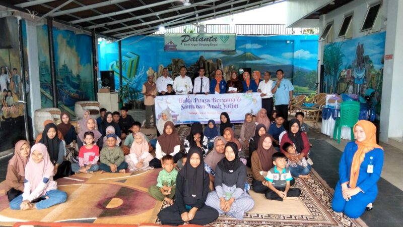 PASAMAN BARAT – Keluarga besar Bank Nagari Cabang Simpang Empat menggelar kegiatan pemberian santunan kepada anak yatim sekaligus buka puasa bersama di Palanta Bank Nagari pada Senin (16/3/2026). Sebanyak 64 anak yatim dari berbagai wilayah menerima bantuan masing-masing sebesar 350 ribu rupiah.