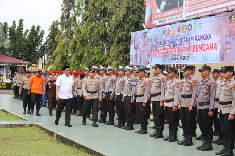 PASAMAN BARAT, SUMBAR.NEWSLINE.ID – Polres Pasaman Barat menggelar Apel Kesiapan Dalam Rangka Tanggap Darurat Bencana tahun 2025 di halaman Mako Polres setempat. Apel ini dipimpin oleh Kapolres Pasaman Barat, AKBP Agung Tribawanto, dan dihadiri oleh berbagai pihak terkait, termasuk Wakil Bupati Pasaman Barat, M. Ihpan.